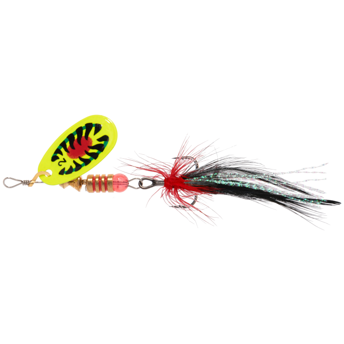 Błystka typu Blaster uzbrojona w dodatkowy chwost okalający kotwiczkę, dzięki dodatkowemu elementowi wabiącemu zwiększa się skuteczność przynęty, szczególnie przy połowie okoni oraz pstrągów.