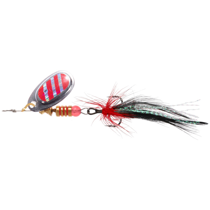 Błystka typu Blaster uzbrojona w dodatkowy chwost okalający kotwiczkę, dzięki dodatkowemu elementowi wabiącemu zwiększa się skuteczność przynęty, szczególnie przy połowie okoni oraz pstrągów.