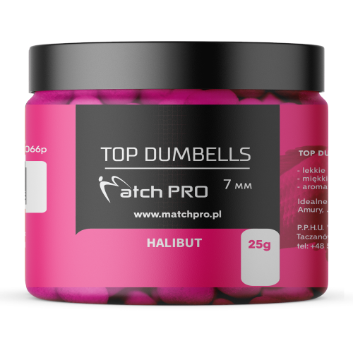 Seria najwyższej jakości przynęt o kształcie wałka (dumbells) w rozmiarze 7mm. Długie i intensywne testy tych przynęt pozwoliły dopracować ich skład i właściwości tak aby były bardzo skuteczne w każdych warunkach. To co wyróżnia Matchpro Top Dumbells to idealna miękkość, dzięki której ryby pewnie ją pobierają. Wyjątkowa lekkość przynęty zapewnia bardzo naturalne zachowanie się w wodzie co niezwykle podnosi skuteczność łowienia. Top Matchpro Dumbells są bardzo aromatyczne, oddając przez długi czas równomiernie aromat w wodzie co przekłada się na dużą ilość brań. Różnorodność smaków i kolorów pozwala dopasować się każdemu wędkarzowi do aktualnych warunków panujących na łowisku. Smak: Halibut Rozmiar: 7mm Kolor: Fluo-różowy Ilość: 25g Rodzaj: Tonące