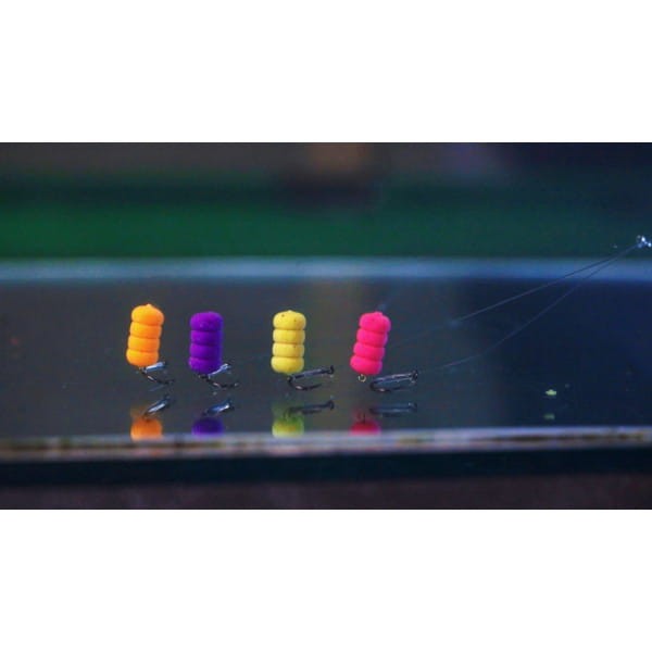 Kolor: Żółty i Brązowy Zapach: Kukurydza + tajemnica Osmo Innovation Opakowanie: 25ml Idealna praca w stylu wafter, Wyporność pojedyńczej larwy dopasowana jest do haków 10 i 12 z grubszego drutu, Wyporność 1 pierścienia dopasowana do bagnetu -> można stosować mniejsze haki w zależności od liczby pozostawionych modułów WIGGLY.