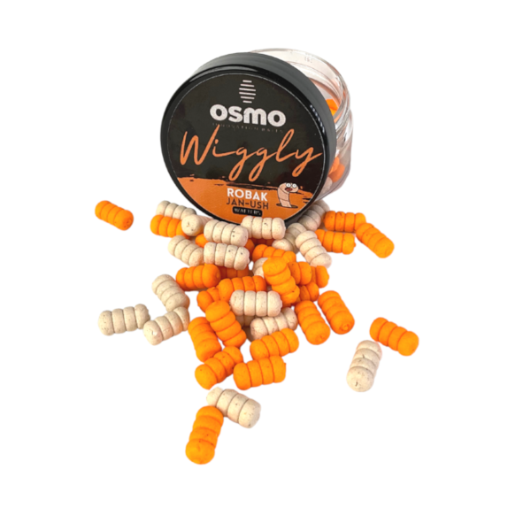 Wiggly to seria nowych innowacyjnych przynęt Osmo. Charakteryzują się wyjątkowym kształtem który może kojarzyć się z robakiem lub wiązką kukurydzy na włosie. Wygląd łącznie z pracą „WAFTOWANIEM” ma dodatkowo pobudzać ryby do aktywnego żerowania. Przynęta doskonale sprawdziła się podczas długich testów na wodą, dopasowaliśmy idealny kształt, zapachy oraz kolory, tak aby przynęty były najskuteczniejsze jak to tylko możliwe. Dodatkowo kształt wiggly został dostosowany, podzielony na moduły tzw. pierścienie które można odrywać, tworząc różne wielkości i kompozycje. Pojedyńczy mały moduł świetnie działa na ostrożne ryby. Wiggly jest oczywiście bardzo skuteczny w całości gdy pokazuje swoje najlepsze walory, a dzięki odłupaniu nawet małego kawałka możemy się wyróżnić w sytuacji krytycznej. Wafters Wiggly oprócz method feeder znajduje doskonałe zastosowanie w łowieniu na bomb fishing, gdzie idealnie zastępuje tradycyjną kukurydze.