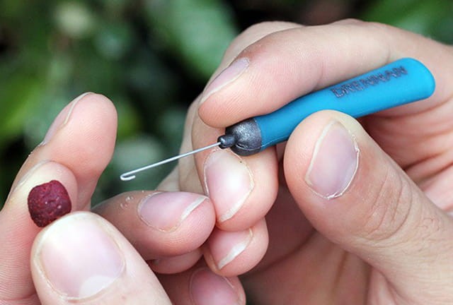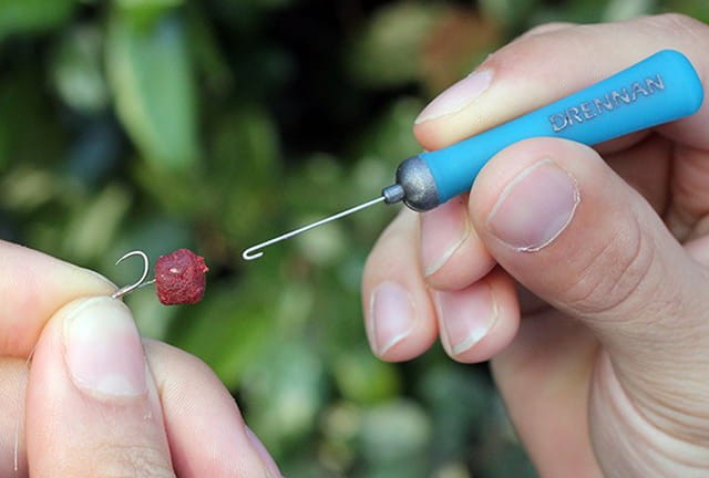 Igła do przekładania gumek lateksowych przez przynęty.