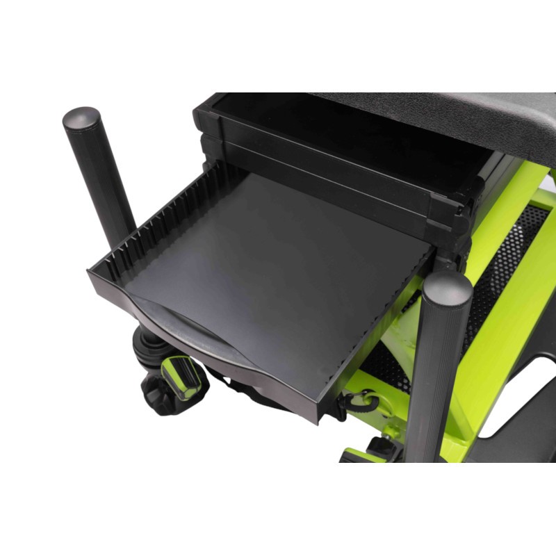 MX36 Pro to topowe siedzisko wyczynowe charakteryzujące się niezbędną stabilnością i możliwością regulacji. Wzbogacony o boczną szufladę, dodatkowe gwinty w nogach D36 oraz pojemną półkę pod obrotowym siedziskiem, na zanęty czy dodatkowe bagaże.