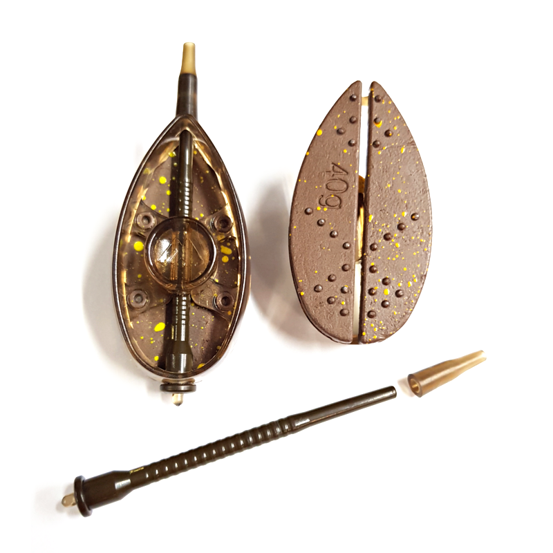 System szybkiej wymiany koszyka, bez potrzeby przewiązywania zestawu. Wystaczy zdjąć gumową tulejkę, zsunąć koszyk z trzpienia i zamienić go innym modelem. Stożkowy, żebrowany trzpień, zapewniający stabilne mocowanie. Zestaw dodatkowo został wyposażony w łącznik do szybkiej wymiany przyponów. Wszystkie te elementy połączone z koszyczkiem Aperio, tworzą najnowszy system Q.M.F. – Quick Method Feeder.