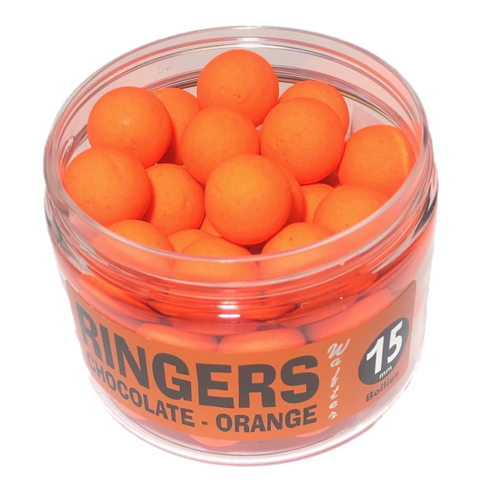 15-milimetrowe pomarańczowe kulki marki Ringers. Intensywnie czekoladowy aromat oraz "neutralna" pływalność gwarantują sukces na większości łowisk komercyjnych.
