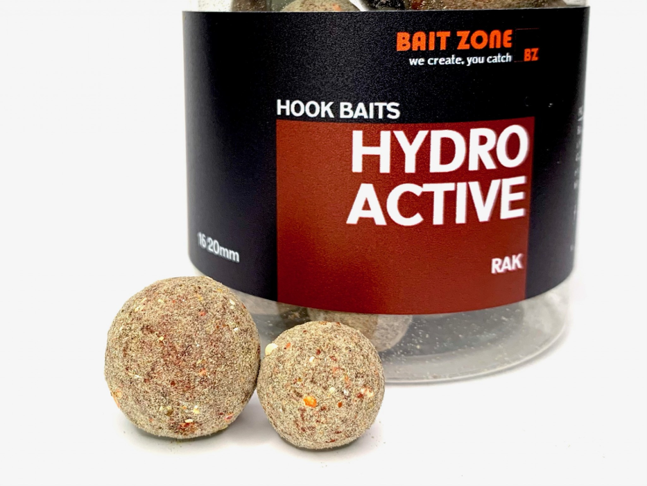 HYDRO ACTIVE – to nowa seria kulek przynętowych która cechuje się niezwykłą siłą wabienia, uzyskaną dzięki zastosowaniu specjalnego procesu produkcyjnego z pominięciem obróbki cieplnej produktu. Dzięki temu uzyskaliśmy “aktywną” przynętę, która w kontakcie z wodą ujawnia swoje najlepsze cechy! Aktywna otoczka to nic innego jak mieszanka witamin, ekstraktów naturalnych pochodzenia zwierzęcego, hydrolizatów, wybranych płynnych pokarmów, mączek rozpuszczalnych w wodzie i legendarnych atraktorów jak Robin Red firmy Haith’s (użyty w PEG-72 oraz RAK). Specjalny proces nanoszenia składników sprawia, iż zachowane są ich wszystkie substancje odżywcze, które dopiero w wodzie zaczynają się uwalniać, tworząc “aktywną” przynętę wyrzucającą do wody drobiny o niezwykłej sile wabienia! Brak dodatku sztucznych aromatów, głęboka – naturalna woń oraz wygląd “wymoczka”, uzyskiwany już po chwili w środowisku wodnym, sprawia, iż przynęta nie wzbudza podejrzeń ryb i wygląda jak rozmoczona kula, która zalega na dnie już dłuższy czas… Zimna woda, łowiska o dużej presji, taktyka pojedynczej kulki, zawody karpiowe, taktyka zastosowania “wymoczonej kulki” bez intensywnego sztucznego aromatu, łowienie z marszu to idealne sytuacje do których nasze przynętówki HYDRO ACTIVE zostały stworzone!