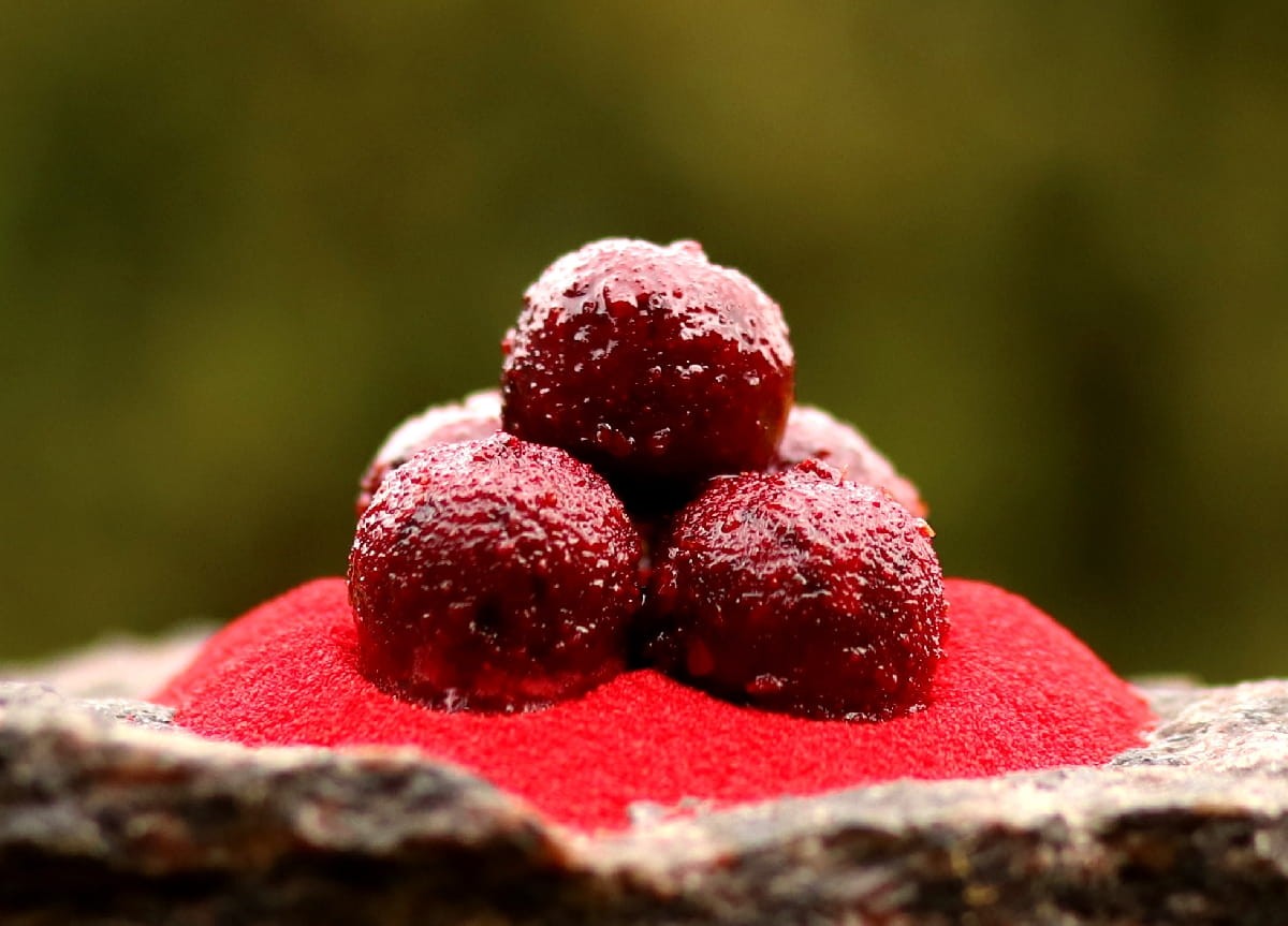 Strawberry Spirit to wyjątkowa kompozycja nowoczesnej truskawki w połączeniu z mączkami squidowymi oraz rozpuszczalnymi proteinami rybnymi. Długo pracowaliśmy nad stworzeniem tego wyjątkowego smaku. Można powiedzieć, że jest to udoskonalona wersja starej truskawki-ryby z przewagą naszego atraktora truskawkowego, wykonanej na miksach rybnych. Kulka ta zawiera dużą dawkę Robin Reda na poziomie 10%, co sprawia, że kulki te mają swój charakterystyczny smak. Dodaliśmy także sporą dawkę słodkiej papryki wraz z ekstraktami oraz przyprawami. Wyjątkowym dodatkiem w tej kulce jest specjalna mączka truskawkowa, która powstaje z wyciskania pestek truskawek. Jest to zupełnie naturalny produkt, bardzo rzadko spotykany na rynku. Całość tworzy niezwykłą mieszankę, która jest naszym topowym produktem. W kulce znajdziemy także ekstrakty, proteiny roślinne, ziarna, zmiksowane stworzenia morskie oraz mieszanki przypraw i ziół. Kulki doskonale sprawdzają się w każdej porze roku, niezależnie od temperatury wody.