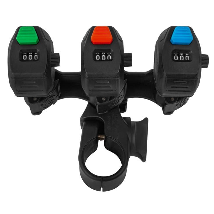 Licznik Preston OFFBOX Clicker Counter Triple P0110097 - Niezbędny element wyposażenia każdego wędkarza startującego w zawodach - służący do rejestrowania liczby ryb lub ich masy. Jest on szczególnie przydatny na łowiskach, gdzie obowiązują limity siatkowe. Potrójny licznik umożliwia wędkarzowi łatwe kontrolowanie kilku siatek, co bardzo się przydaje w przypadku zawodniczego łowienia. Jego obsługa jest niezwykle prosta, dodajemy liczby poprzez naciśnięcie dużego przycisku na górze. Aby wyzerować wyświetlacz należy użyć pokrętła z boku urządzenia. W zestawie uchwyt Offbox Knuckle wraz z wkładkami, co oznacza, że licznik będzie pasował na nogę praktycznie każdego siedziska lub platformy.