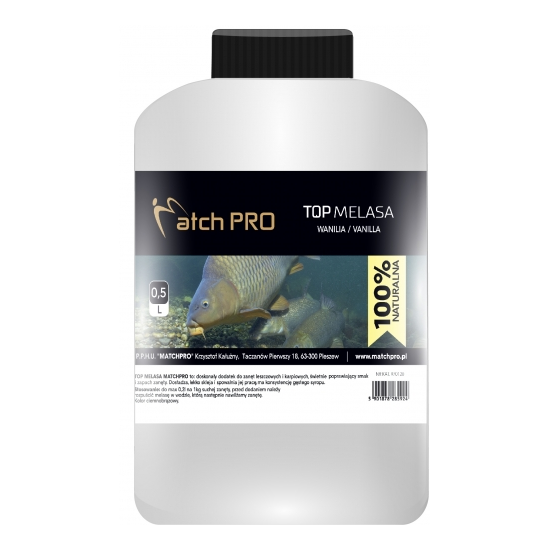 TOP MELASA MATCHPRO to doskonały naturalny dodatek do zanęt leszczowych, karpiowych oraz rzecznych, który poprawia smak i zapach mieszanki. Dosładza, lekko skleja i spowalnia jej pracę. Najlepiej stosować 0,2L TOP MELASY na 1 kg zanęty. Przed dodaniem rozpuścić produkt w wodzie przeznaczonej do nawilżenia zanęty. Rodzaj: Wanilia Ilość: 500ml