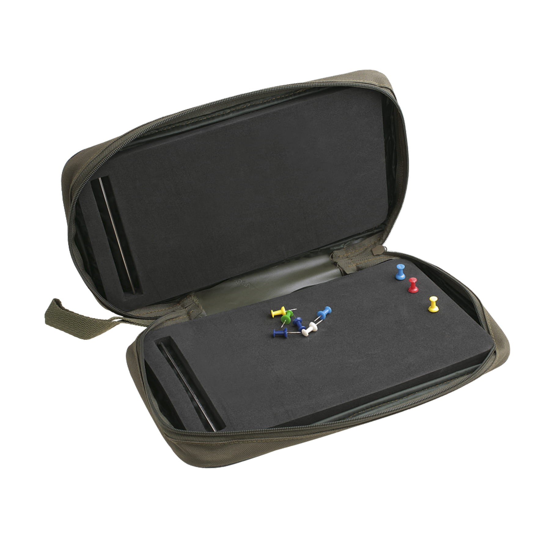 Portfel przeznaczony do przechowywania gotowych zestawów. Jego specjalna budowa pomaga w zabezpieczeniu linek i haczyków podczas transportu, jak również w utrzymaniu nienagannego porządku. Wykonany z łatwego w czyszczeniu materiału, z usztywnianymi skrzydłami. Zamykany na zamek błyskawiczny.