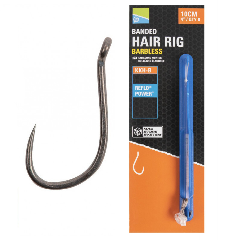 Przypony Preston KKH-B Mag Store Hair Rigs to gotowe zestawy,wykonane z materiałów najwyższej jakości i powiązane z precyzyjnymi specyfikacjami, aby stworzyć zestawy odpowiednie dla wszystkich wędkarzy. W pełni załadowany przypon można wyjąć bezpośrednio z opakowania i umieścić w pudełku systemu Mag Store o odpowiedniej wielkości. Każde opakowanie zawiera 8 ręcznie wiązanych przyponów, które są przechowywane na drabince, rozmiar haka wraz ze średnicą żyłki można łatwo zidentyfikować na podstawie dołączonej naklejki. Na każdym zestawie stosowane są haki KKH-B, przywiązane do wypróbowanej i przetestowanej żyłki Reflo Power. Zestawów Banded Rigs można używać do pelletów i Bandum’ów , zaś zestawy Bayonet Rigs są idealne do kulek.