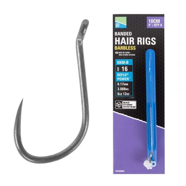 Seria gotowych przyponów Preston, które zostały umieszczone na drabince kompatybilnej z systemem "Mag Store System". Haczyki zawiązano na bardzo dobrej żyłce Reflo Power. Średnica żyłki została precyzyjnie dobrana do wielkości użytego haczyka pokrytego teflonem. Wielkość haka: 16 Model haka: KKM-B Kolor haka: Ciemny teflon - matowy Średnica żyłki: 0,17mm Wytrzymałość żyłki: 3.088kg // 6lb 12oz Długość przyponu: 10cm // 4" Ilość: 8szt. HACZYKI BEZZADZIOROWE Z GUMKĄ