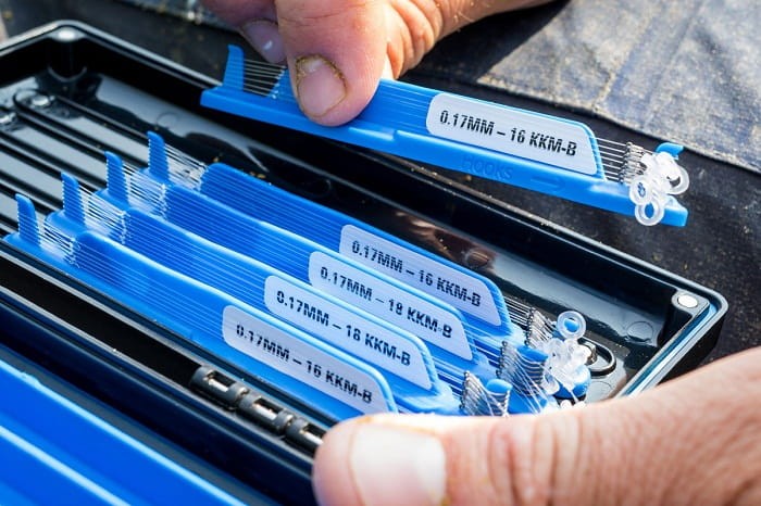 Seria gotowych przyponów Preston, które zostały umieszczone na drabince kompatybilnej z systemem "Mag Store System". Haczyki zawiązano na bardzo dobrej żyłce Reflo Power. Średnica żyłki została precyzyjnie dobrana do wielkości użytego haczyka pokrytego teflonem. Wielkość haka: 14 Model haka: MCM-B Kolor haka: Ciemny teflon - matowy Średnica żyłki: 0,19mm Wytrzymałość żyłki: 3.335kg // 7lb 6oz Długość przyponu: 10cm // 4" Ilość: 8szt. HACZYKI BEZZADZIOROWE Z GUMKĄ