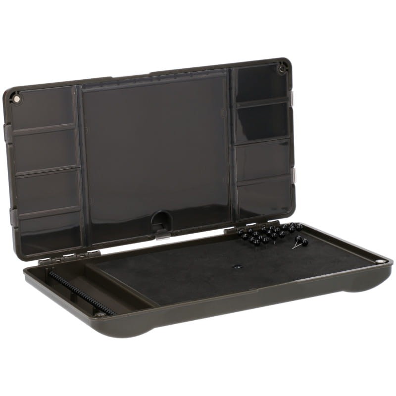 Specjalistyczne pudełko karpiowe z systemem przegródek i magnesów. Wyposażone w dodatkową piankę oraz szpilki do wiązanych przyponów, oraz cały zestaw drobnych przegródek na akcesoria niezbędne podczas wędkowania.