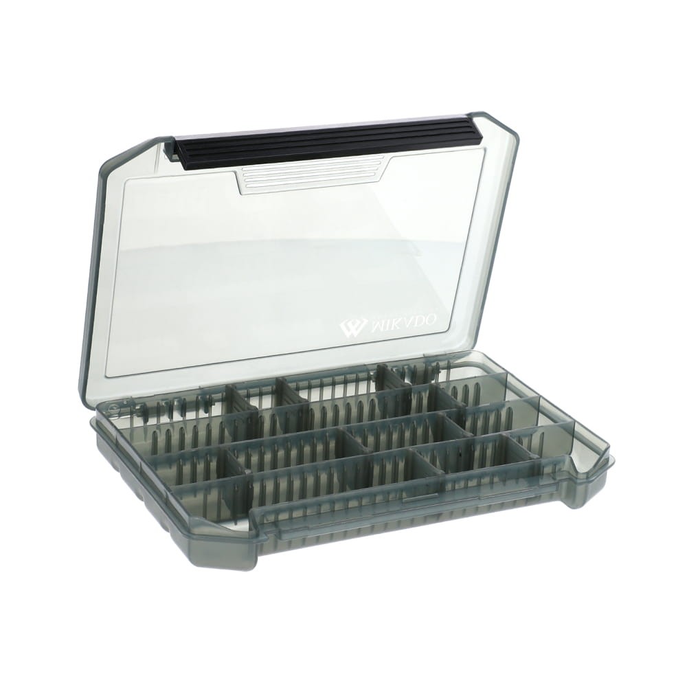 Wysokiej jakości kompaktowe pudełko wędkarskie w kolorze czarnym. Posiada regulowane przegródki oraz mocne jednostronne zamknięcie. Specjalna, płytka konstrukcja idealnie sprawdzi się do przechowywania mniejszych gum oraz drobnych akcesoriów.