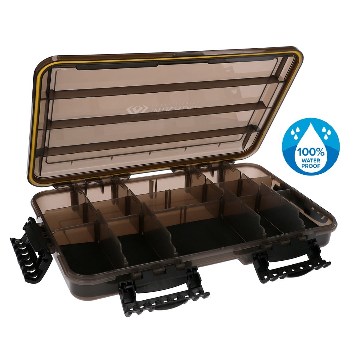 Jednostronne, 100% wodoodporne, czarne pudełka wędkarskie z uszczelkami. Dolne przegródki zostały wyłożone specjalnie naciętą pianką. Posiadają również klasyczne, regulowane przegródki bez pianki do przechowywania wszelkiego rodzaju przynęt.