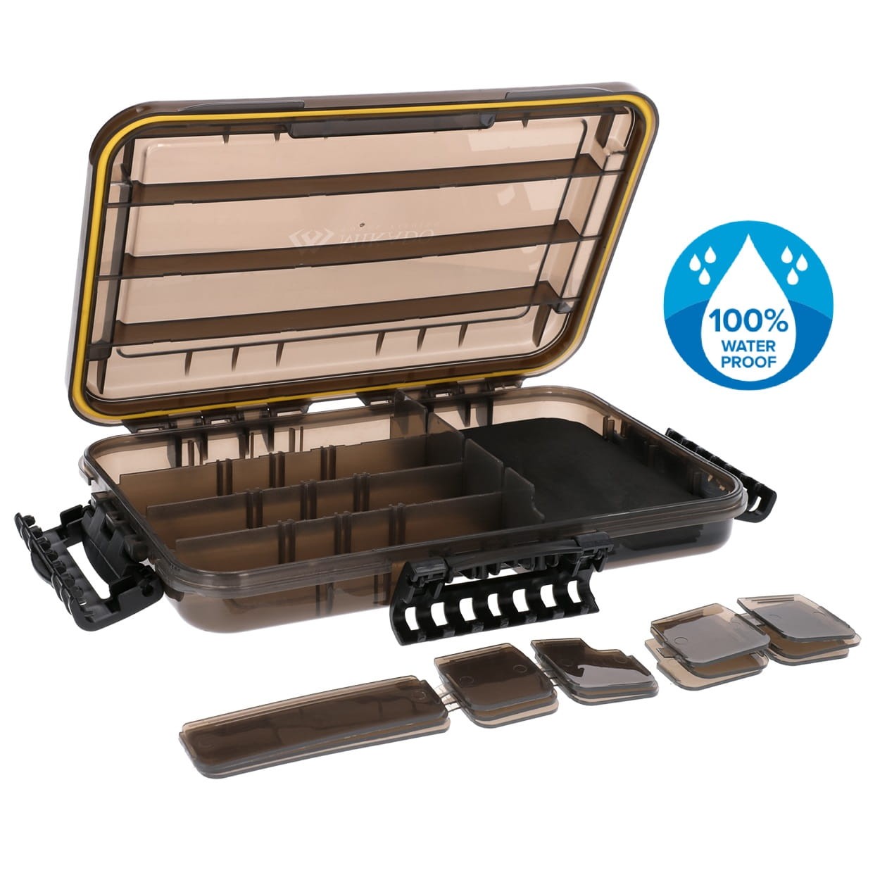 Jednostronne, 100% wodoodporne, czarne pudełka wędkarskie z uszczelkami. Dolne przegródki zostały wyłożone specjalnie naciętą pianką. Posiadają również klasyczne, regulowane przegródki bez pianki do przechowywania wszelkiego rodzaju przynęt.