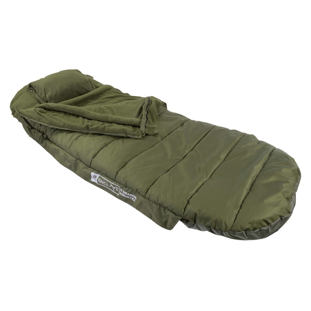 Wysokiej klasy śpiwór całoroczny z rodziny Enclave. Gruby, ciepły i wykończony w pełni wodoodpornym materiałem Aquatex. Pasujący na większość łóżek dostępnych na rynku, wyposażony w niezawodne zamki, polarowe wykończenie wnętrza i poduszkę.