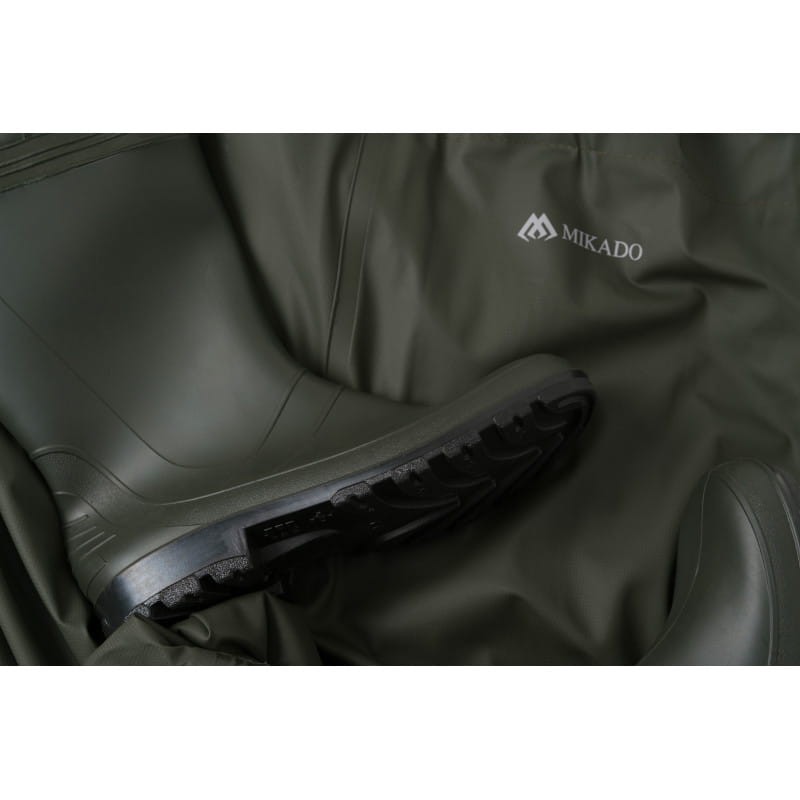 Spodniobuty wykonane z wysokiej jakości materiału poliestrowego. Nowoczesna technologia zgrzewania szwów, gwarantuje stuprocentową wodoodporność i dużą odporność na uszkodzenia. Kalosze wyposażono w podeszwę z bieżnikiem, co gwarantuje dużą stabilność