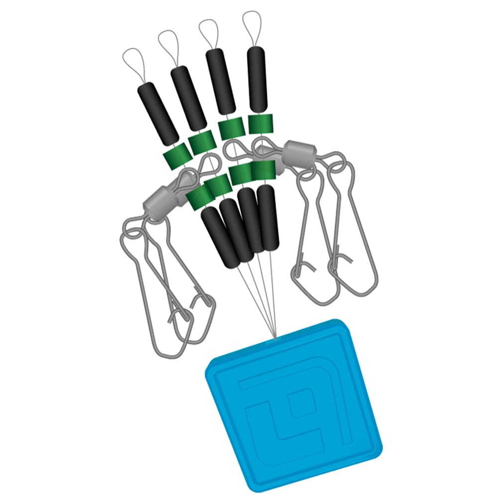 Stopery Lorpio Stick z agrafką i krętlikiem to poręczne stopery, które dzięki umieszczeniu na drutach można łatwo naciągnąć na żyłkę, aby uzbroić zestaw z wagglerem lub koszykiem.
